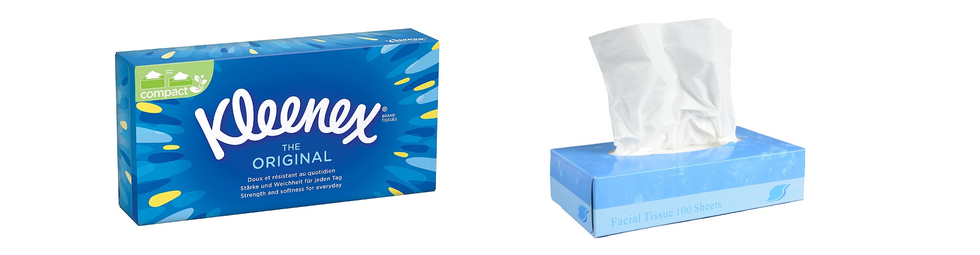 Who doesn’t like popping those bubbles when you get your items delivered in them? However, these are actually called air bubble packaging sold by the name bubble wrap by the company ‘Sealed Air Corporation’. - Kleenex.